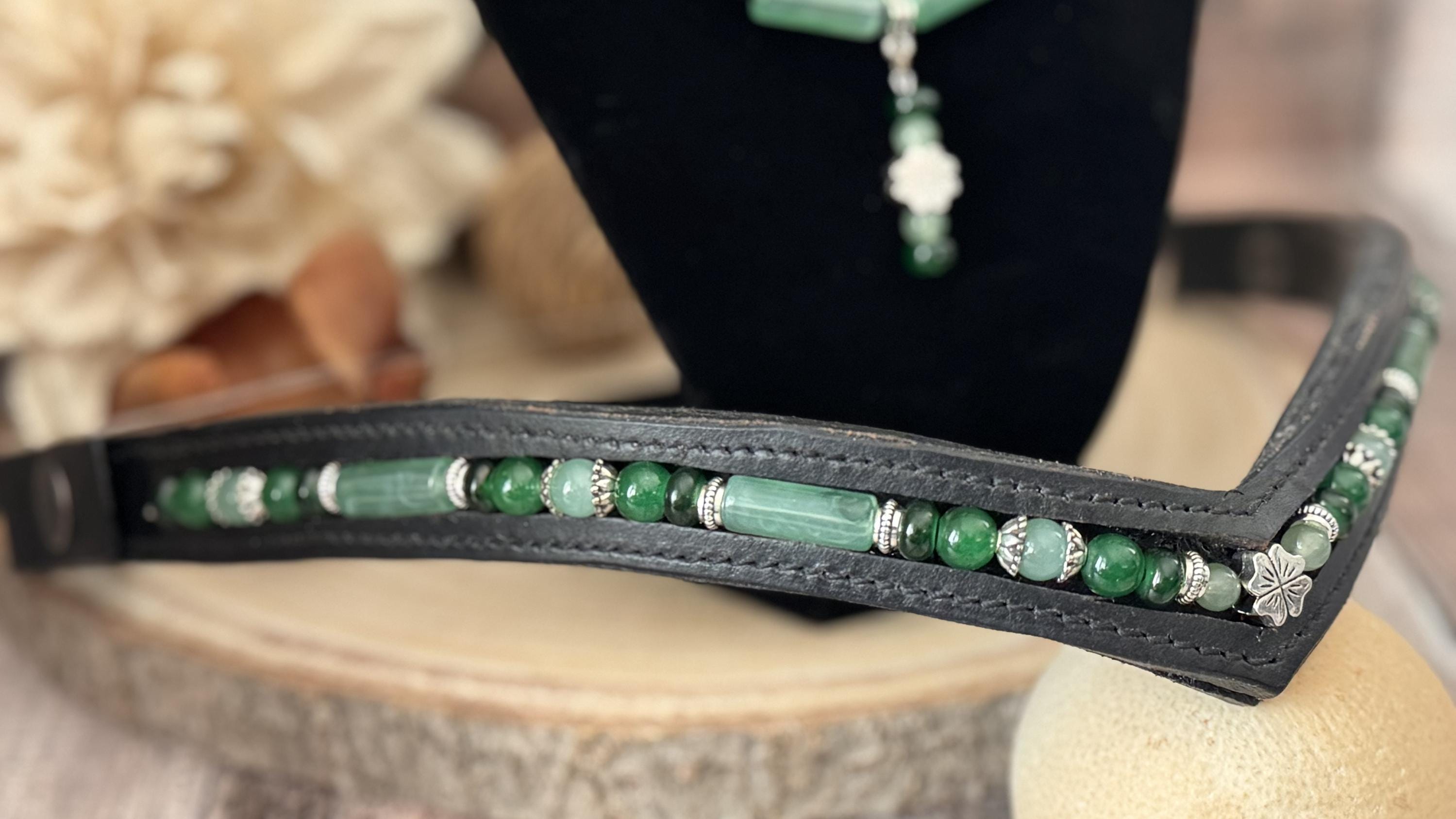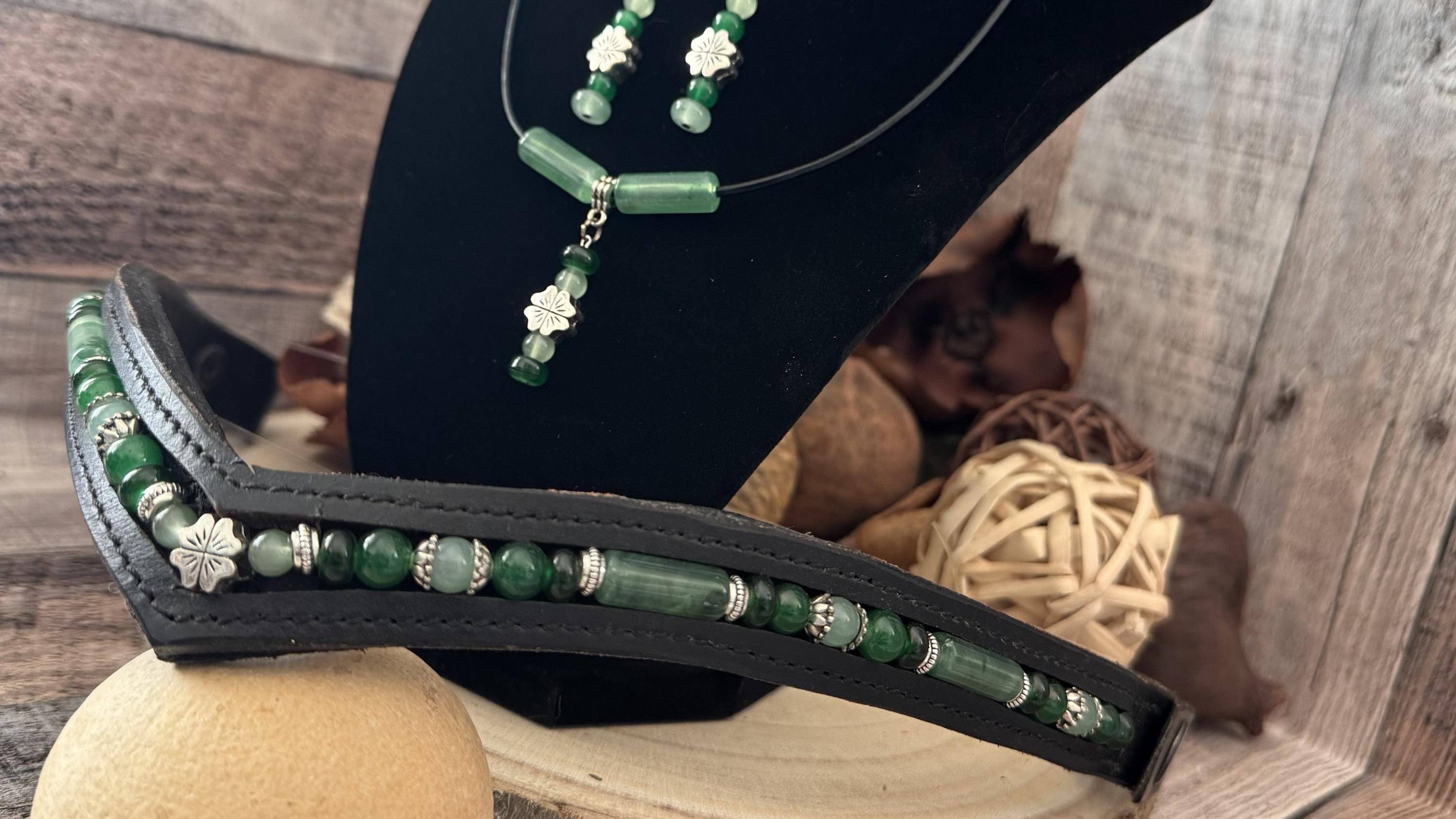 This coordinated set of earrings, bracelet, necklace and browband are a fun and easy way to add some color to your day. The browband is a 18", black, V-shape, which while not the highest quality (hence the lower price), but is a fun and quick ways to add some color to your ride!